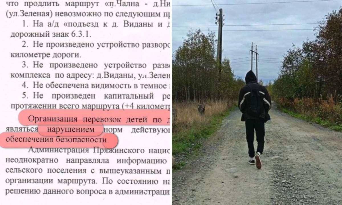Депутат Заксобрания Карелии предложила пустить школьный автобус по дороге в деревню Виданы, где 10-классник каждый день проходит по 4 километра рядом с дикими животными. Администрация Пряжинского района дала интересный, но несколько противоречивый ответ.
