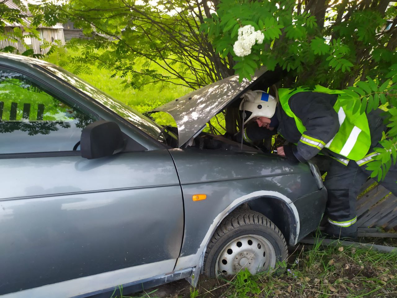 На место аварии выехал дежурный караул ПЧ-62. Пожарные провели аварийно-спасательные работы и отключили аккумулятор в машине. Водитель оказался в порядке, однако, предположительно, он был пьян.
