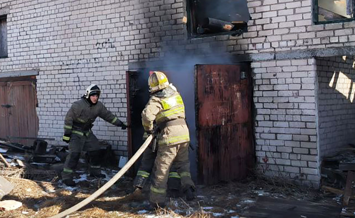 Сегодня пожарным пришлось спасать двухэтажный гараж в поселке Мелиоративный Прионежского района.