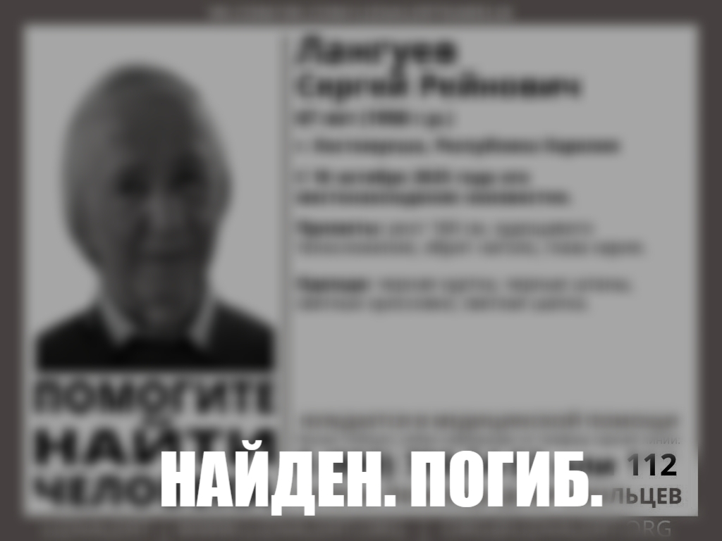 — Найден. Погиб. Приносим искренние соболезнования родным и близким, — сообщили вчера днем в паблике поискового отряда.