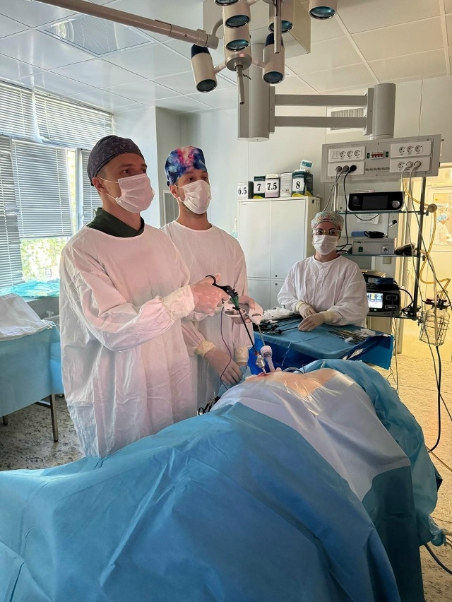 Под общим наркозом пациенту выполнена лапароскопическая нефрэктомия с околопочечной жировой клетчаткой, удалением всего правого мочеточника и резекцией части мочевого пузыря, а также удалением всей клетчатки правой половины тела, где могли бы находиться метастазы. Такой объем необходим по всем канонам онкологической хирургии.