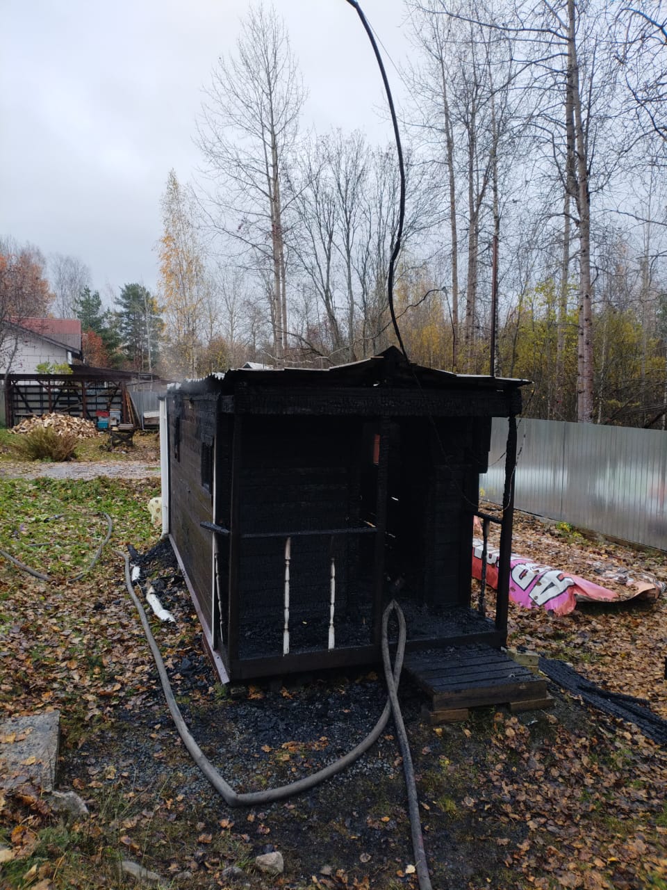 В Прионежском районе пожарные пытались спасти баню, которая горела по всей площади.