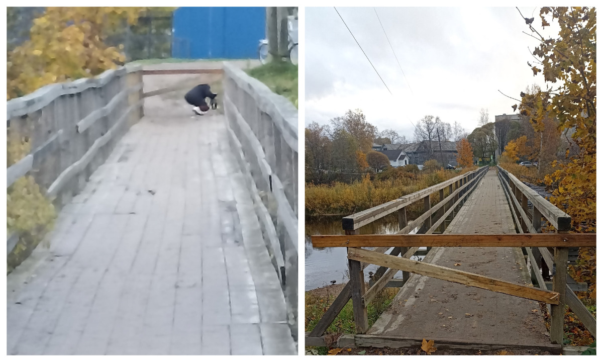 В Олонце жители продолжают ходить по старому «больничному» мосту, хотя он давно признан аварийным и официально закрыт.