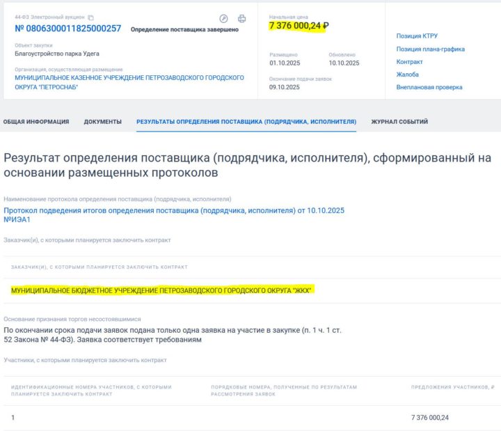 Судя по данным на портале «ЕИС Закупки», на благоустройство потратят 7 миллионов 376 тысяч рублей. Подрядчиком выступает МУ Петрозаводского городского округа «ЖКХ». Закончить благоустройство должны до 20 ноября 2025 года.