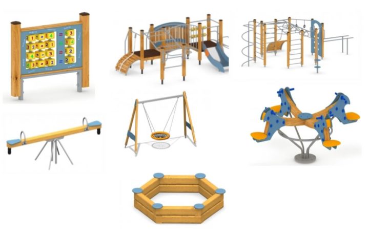 В проекте также показали, что планируется поставить в парке. Будет даже игровая панель с кубиками, на которых изображены цифры и знаки математических примеров, а также качели, песочница, карусель, игровой и спортивный комплексы.
