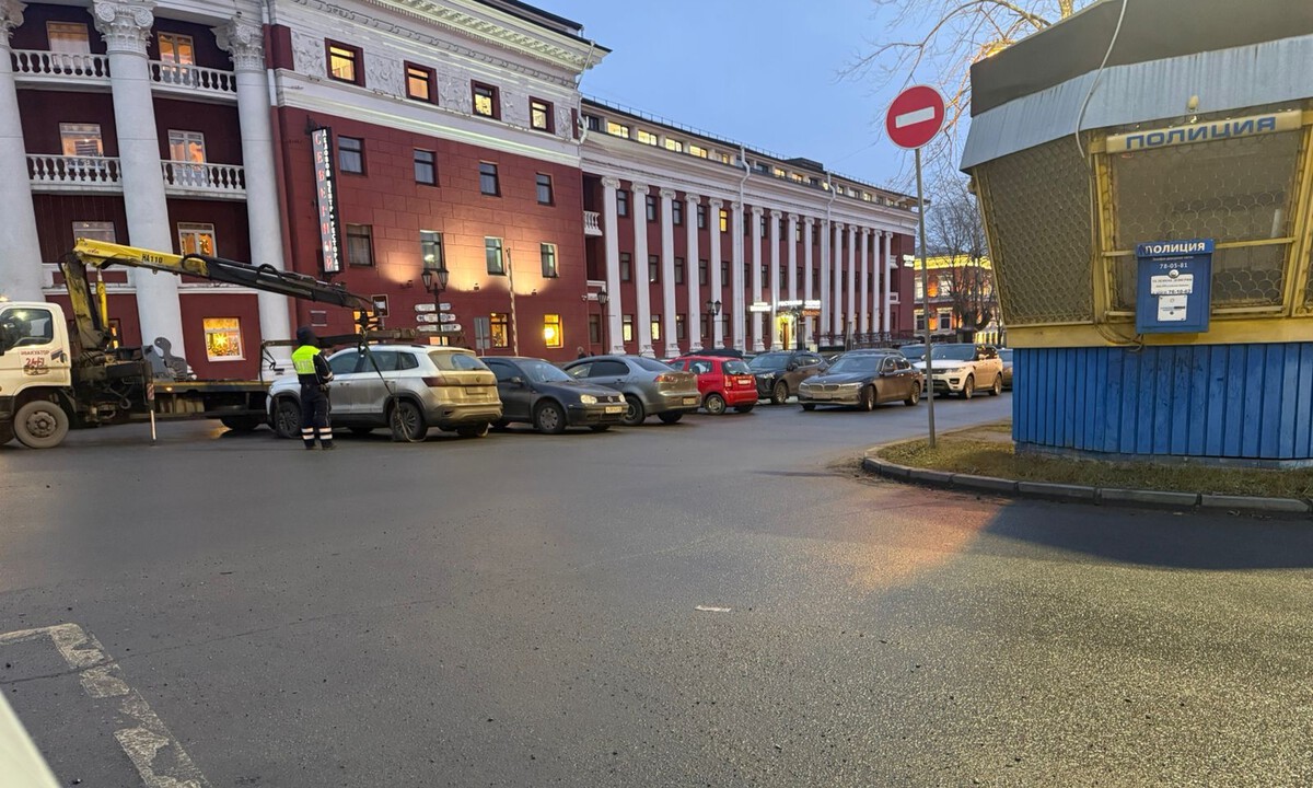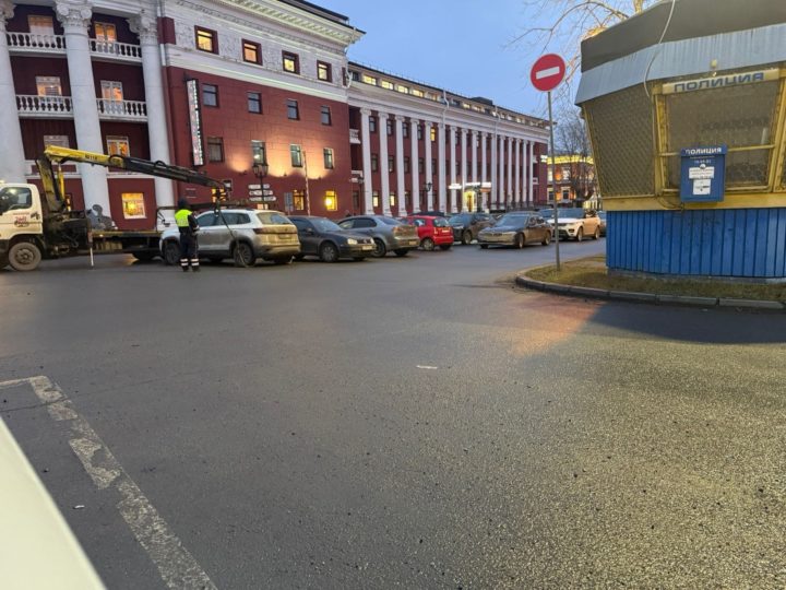 В Петрозаводске эвакуировали автомобили, которые водители оставили вторым рядом возле гостиницы «Северная» — машины уже отправили на штрафстоянку.