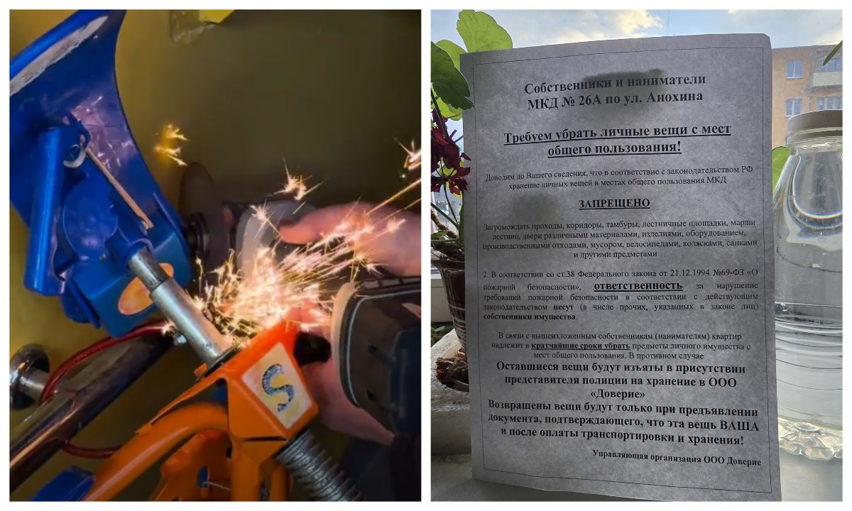 В паблике управляющей компании «ОнегоСтройСервис» появилось видео, как изымают велосипеды, снегокаты и самокаты, все то, что запрещено хранить в подъездах. Некоторые велосипеды спиливали «болгаркой». А при изъятии присутствовал сотрудник полиции.