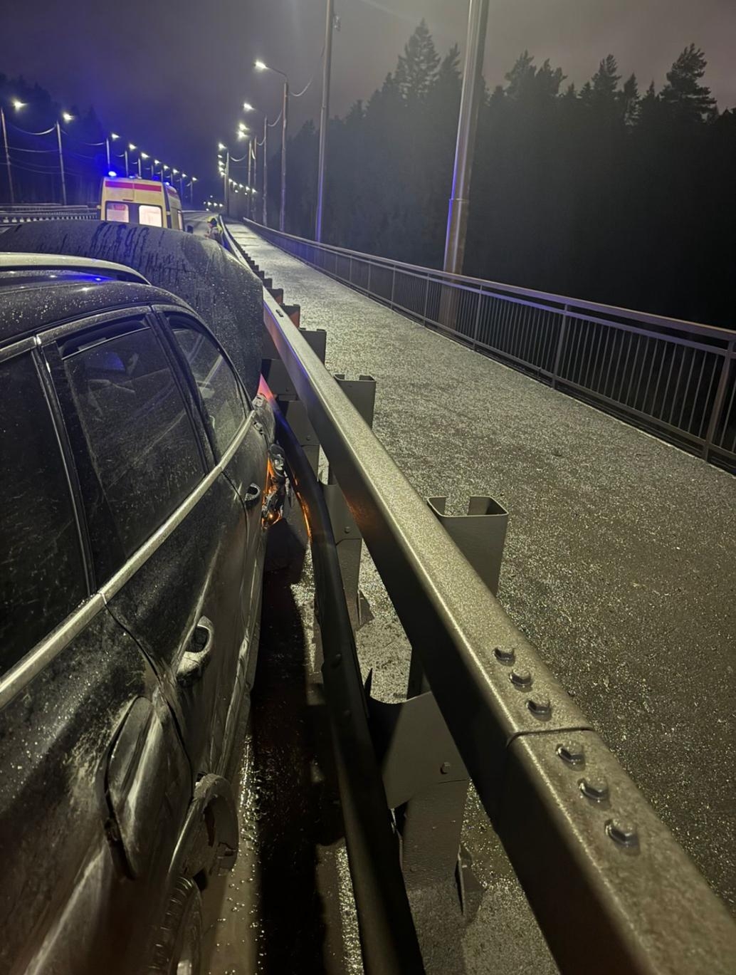 Вчера вечером, 13 ноября, машина влетела в ограждение моста между Кукковкой и Древлянкой.