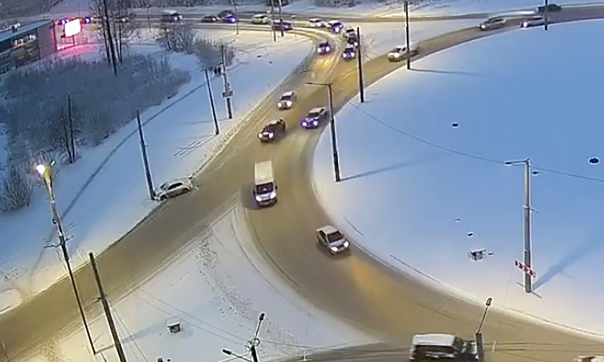 В Петрозаводске на Древлянском кольце занесло автомобиль.