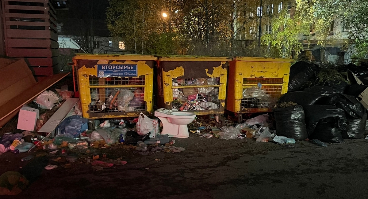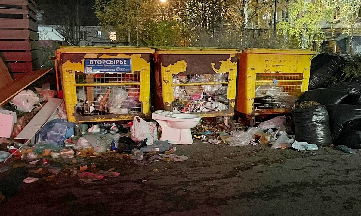 В Петрозаводске на помойке с унитазом мусор лежит полгода