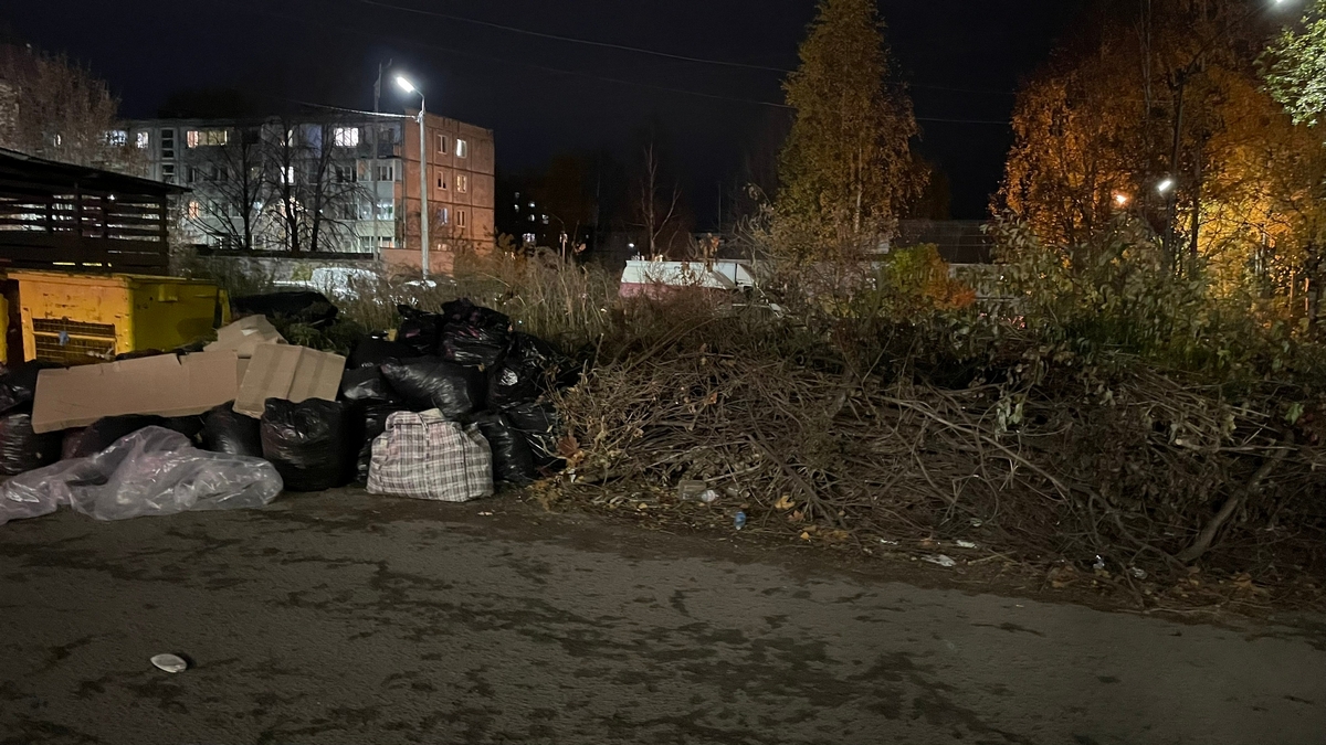 Горожанка рассказала в местном паблике, что весной в расположенном рядом техникуме городского хозяйства (что даже иронично — прим. авт.) проводили субботник, и спиленные ветки остались возле мусорки. Как и черные пакеты со спилом, листьями и другим мусором.