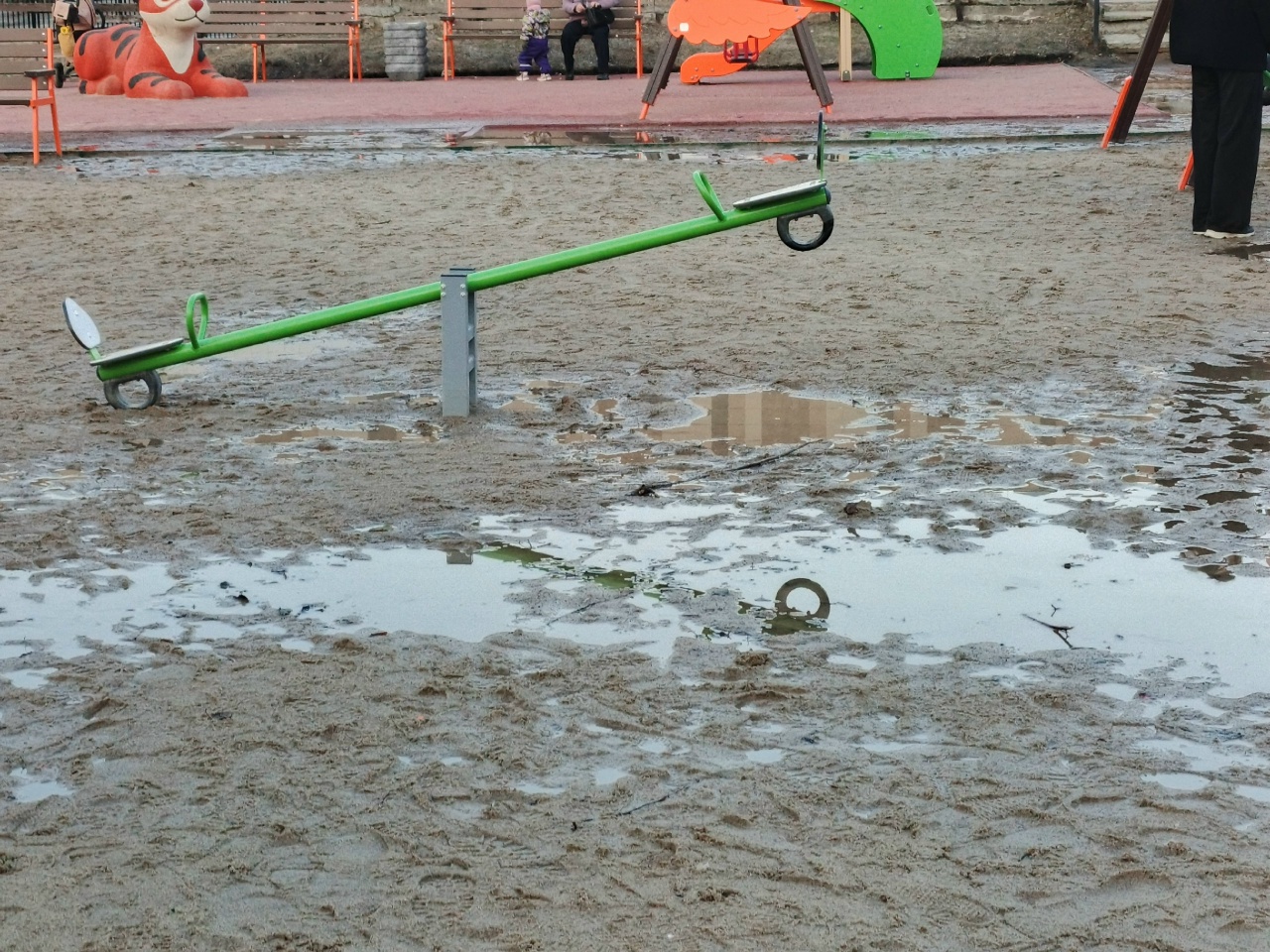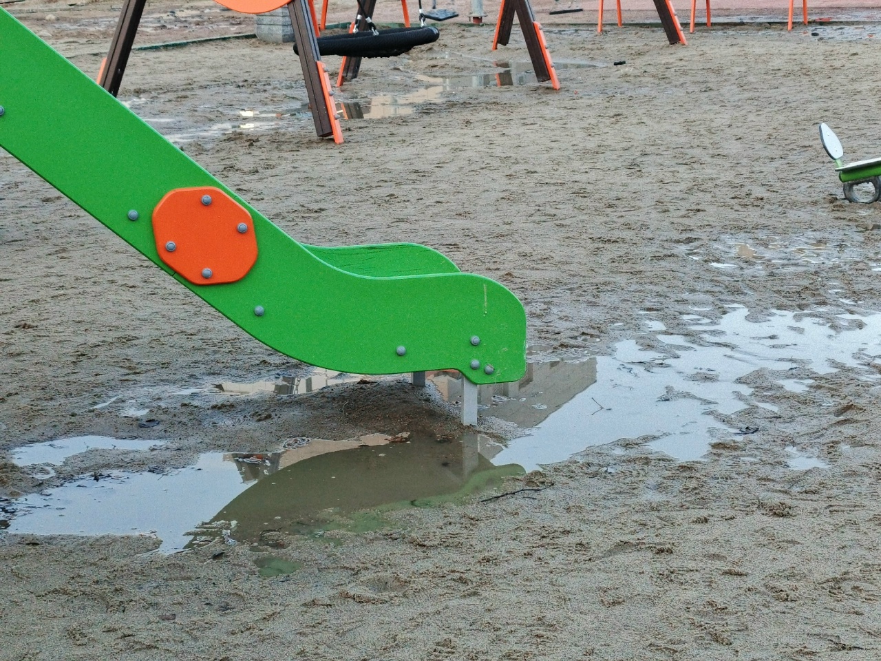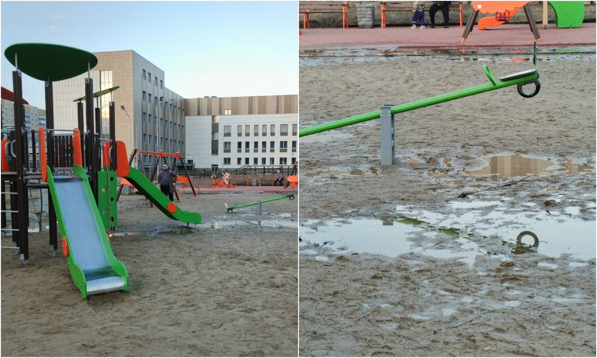 В Петрозаводске новая детская площадка превратилась в месиво из песка и грязи