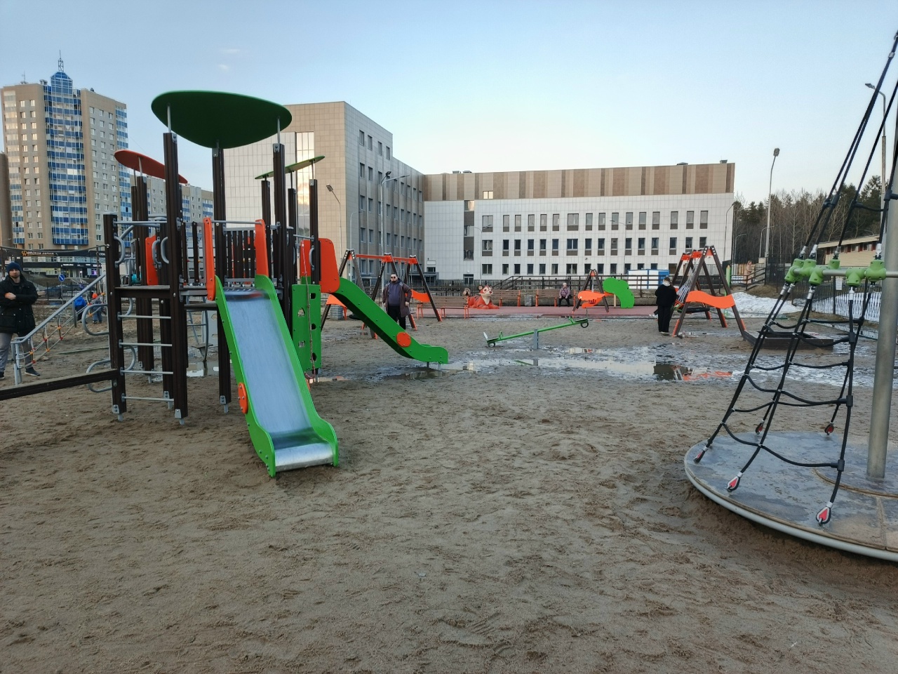 Жители Кукковки пожаловались, что на новой детской площадке у поликлиники № 4 забыли сделать покрытие: теперь место для отдыха с детьми превратилось в огромную песочницу с лужами. Горожане отметили, что на детской площадке можно было бы уложить безопасное для детей мягкое покрытие, а не оставлять песок.