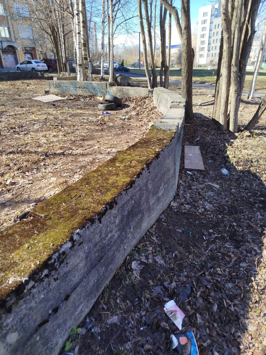 Горожане пишут в паблике «Подслушано в ПТЗ», что сквер расположен на границе с парковой зоной Аллеи 300-летия Петрозаводска, но не включен при этом в муниципальный контракт на регулярную уборку. Сейчас в сквере скопились старые покрышки, строительный мусор, битое стекло и опавшая листва.