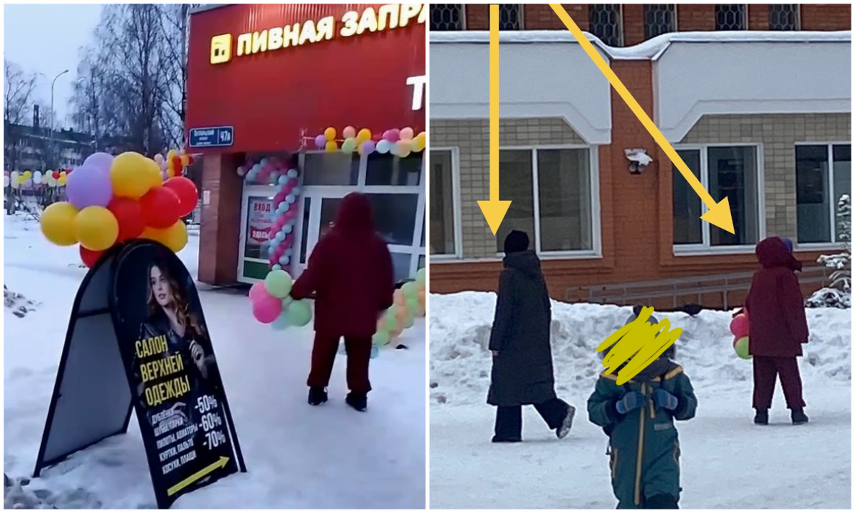 Еще один подозрительный магазин курток с шариками заметили у ТЦ Ягуар на Древлянке. Там тоже ходят две женщины: одна в бордовой куртке с шарами (судя по фото, это та же женщина, что была и на Октябрьском), а вторая молодая, высокая, в темном пальто и смешной шапке.