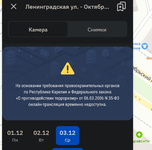 Публичные уличные камеры, установленные провайдерами, перестали работать в Петрозаводске в режиме реального времени.