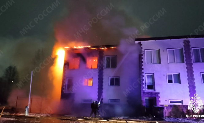 Как сообщает МЧС Карелии, сообщение о пожаре поступило в 00:02. Общая площадь пожара составила 200 квадратных метров. На месте работали 20 спасателей и семь пожарных машин. Огонь повредил три блок-секции — № 8, 9 и 10.