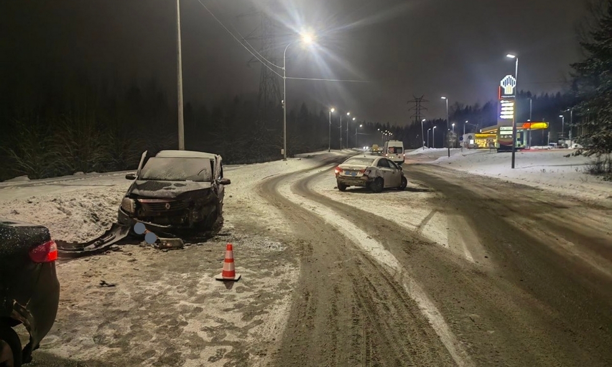 Авария случилась 28 декабря в 03.23 в районе дома № 12-а по Лососинскому шоссе. По данным ГАИ, 34 — летний водитель автомобиля Chevrolet выехал на полосу встречного движения и столкнулся с автомобилем Renault. Травмы получил 24-летний водитель Renault.