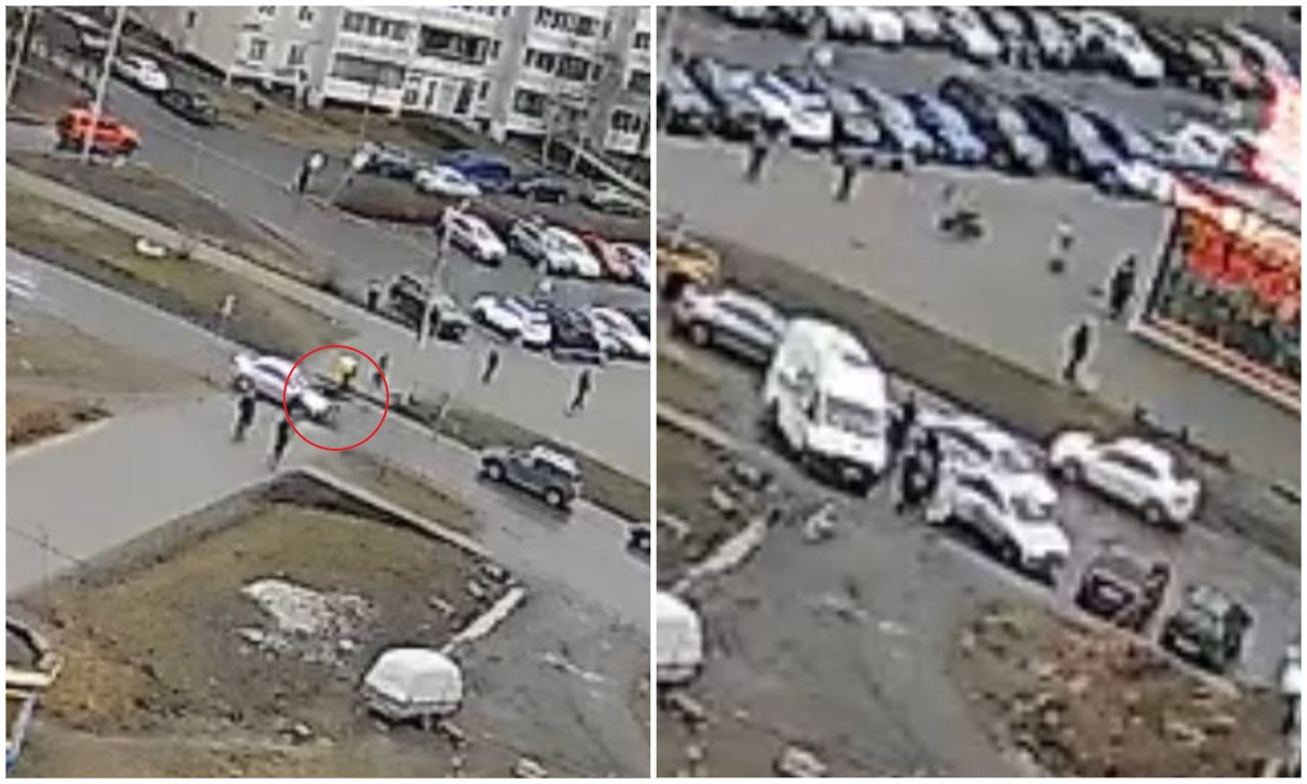 Вчера вечером на пешеходном переходе у ТЦ «Весна» на Древлянке жестко сбили самокатчика. Парень проехал на капоте и отлетел на несколько метров, но потом смог встать на ноги. На кадрах видно, как водитель побежал к пострадавшему. Судя по кадрам, самокатчик пострадал: на месте работала «скорая» и полиция.