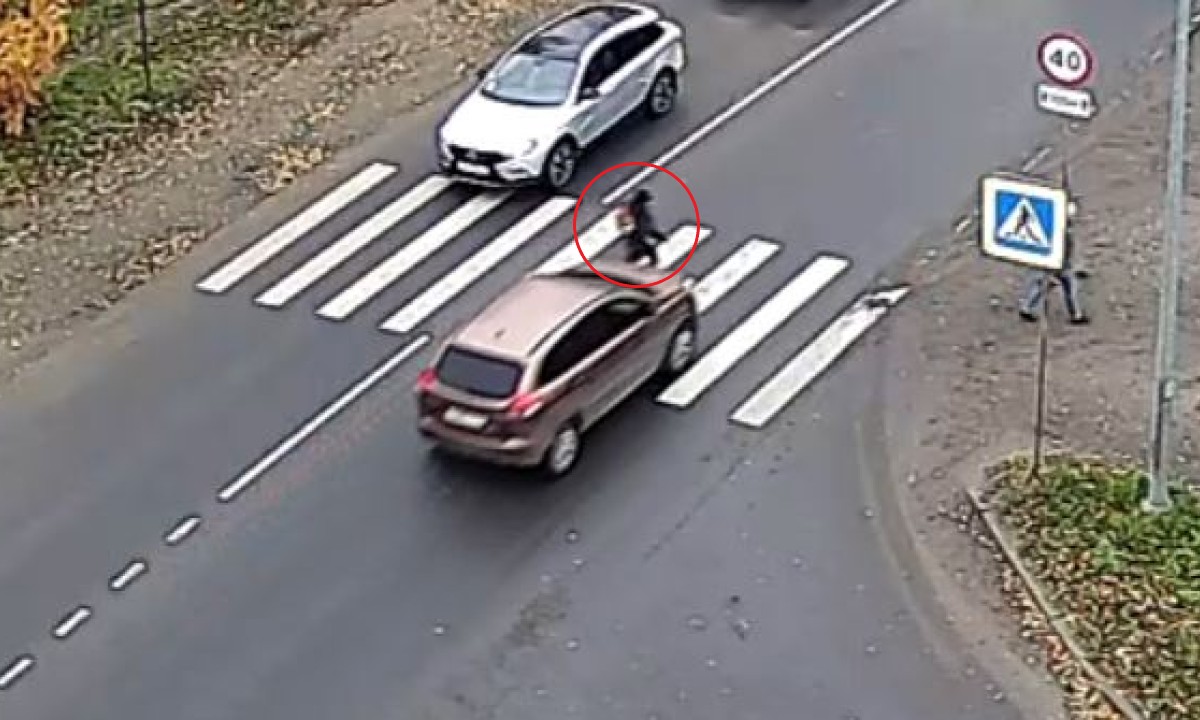 Авария произошла сегодня в 7:32 на пешеходном переходе по улице Гвардейской. Как видно на кадрах, водитель замедлился перед одним пешеходом, но не заметил школьника, который бежал по пешеходнику, и сбил его. К счастью, ребенок сильно не пострадал: он тут же встал и побежал.