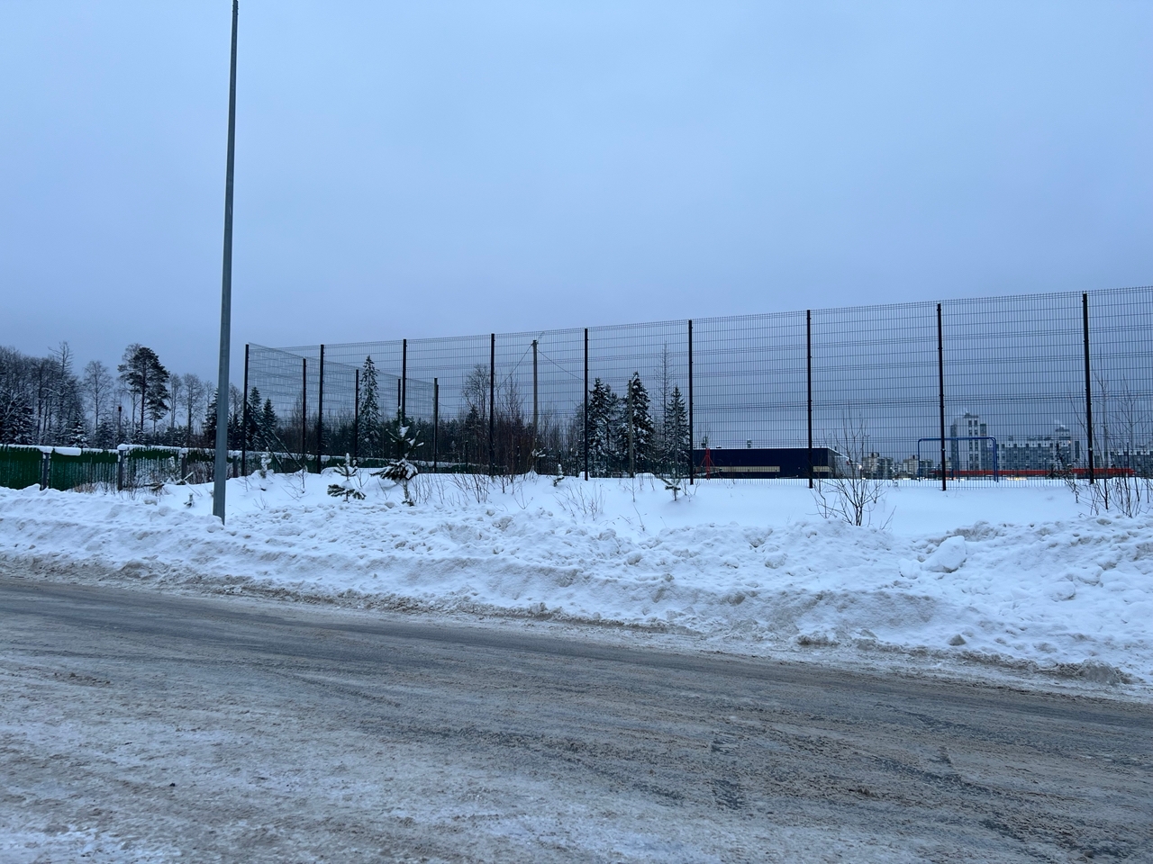 Сейчас у спортивной площадки уже стоит строительный забор.