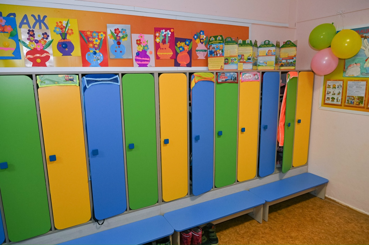 Также в детсад закупили новую мебель: в группах установили современные «растущие» столы, а в раздевалках смонтировали разноцветные шкафчики.