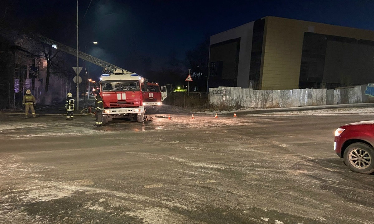 В Петрозаводске горит дом на перекрестке улиц Володарского и Калинина.