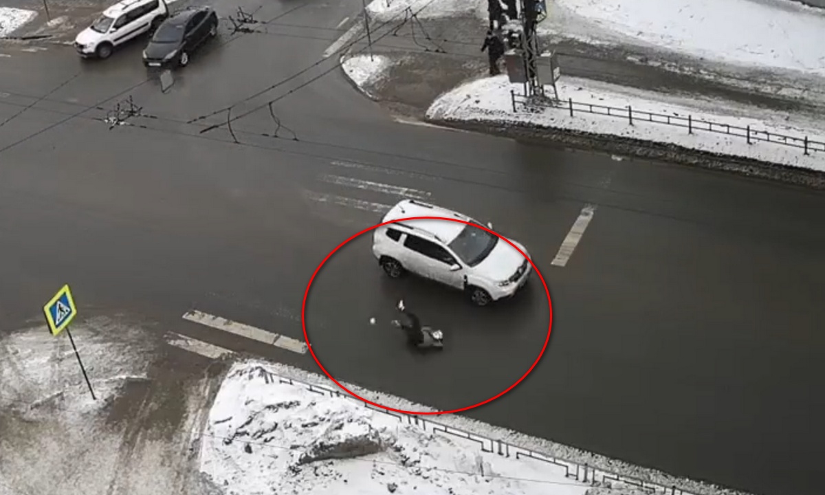 Авария случилась сегодня в 12:25 в Петрозаводске на перекрестке улиц Красной и Антикайнена. Как видно на кадрах, автомобиль поворачивает налево, ускоряется и на большой скорости сносит пешехода. Женщина отлетела на несколько метров и не смогла подняться. Она корчилась от боли и кричала.