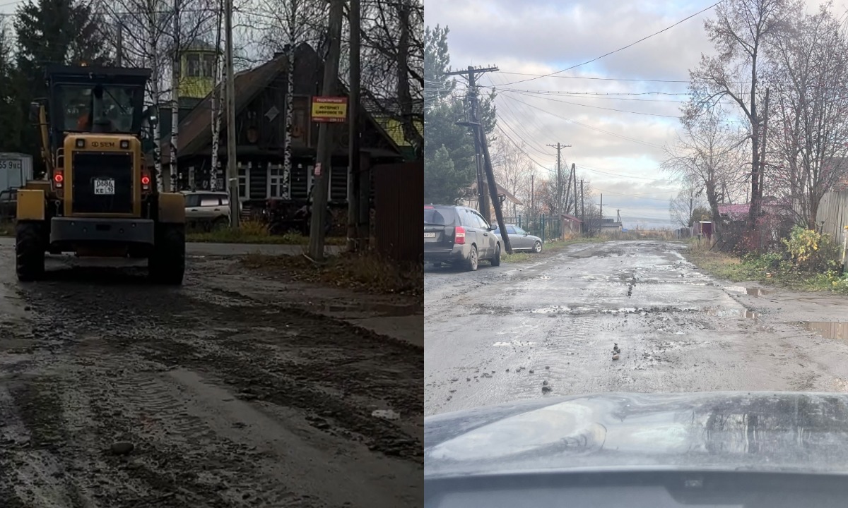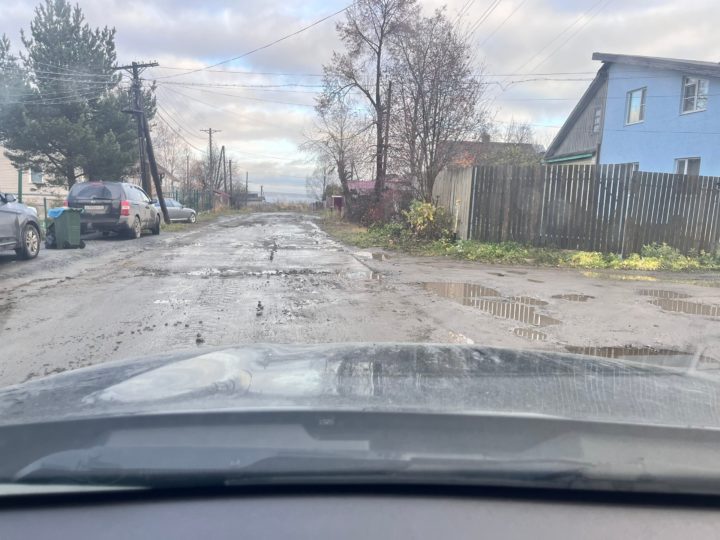 «Всё в грязи и ямах». В Петрозаводске грейдер изуродовал дорогу