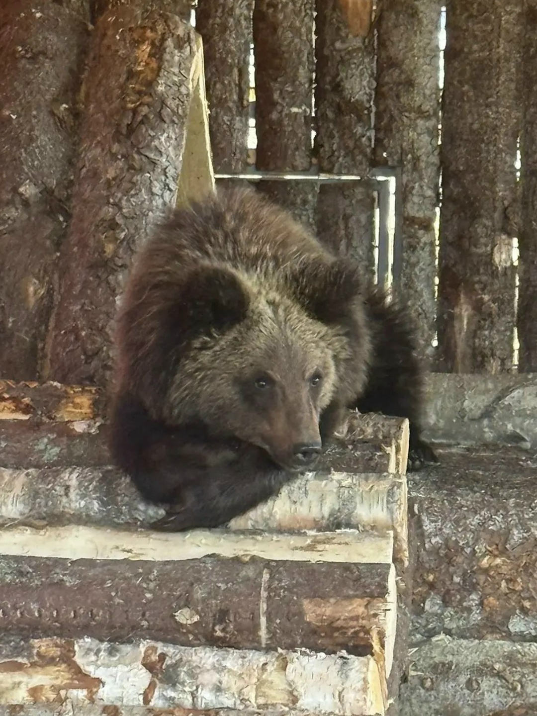 — Медвежонок весь изранен, пострадал от укусов. Когда он стал ненужным, его выкинули на ходу с мотовоза. Благодаря волонтерам его доставили к нам. Мы подготовили вольер. Думали, что он там в угол забьется после пережитого, но ходит, как будто всегда с нами был, — рассказала ТАСС директор зоопарка Алена Красюкова.
