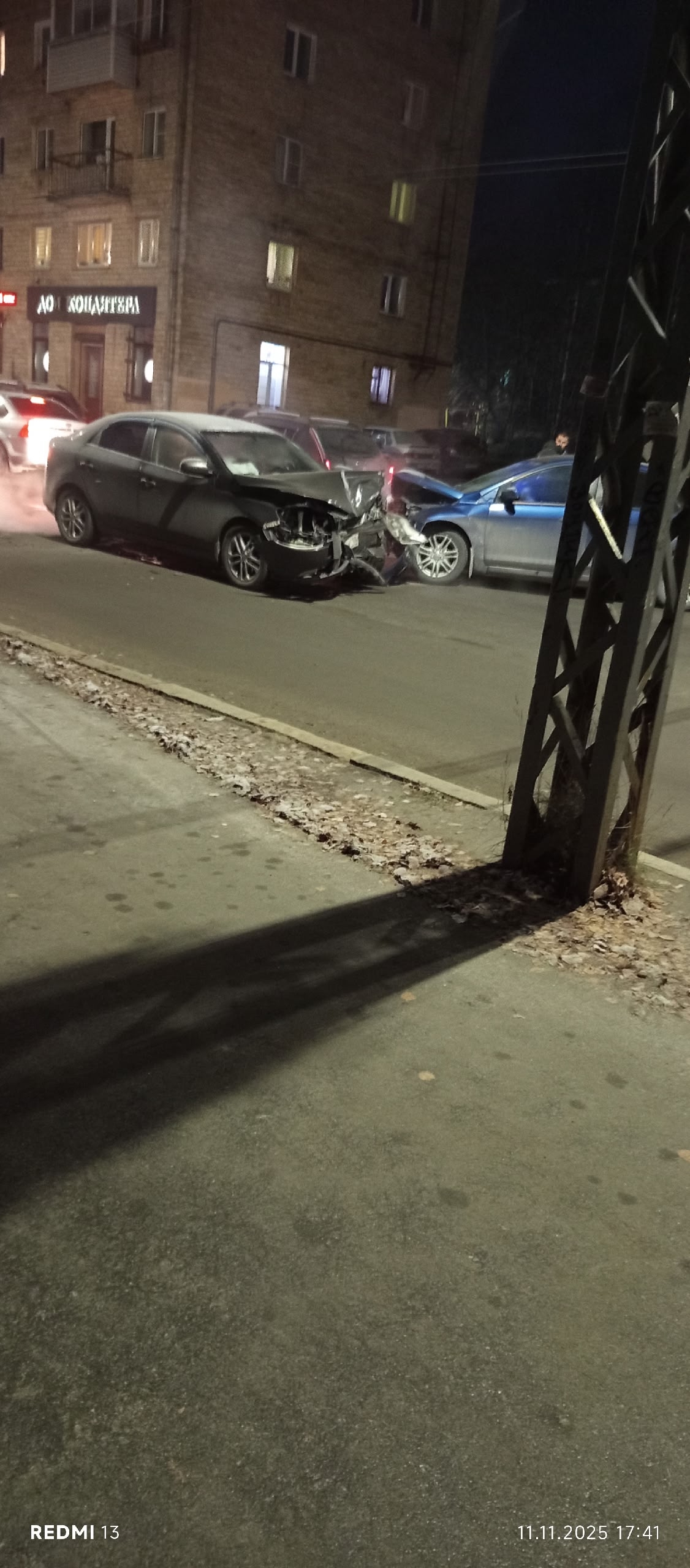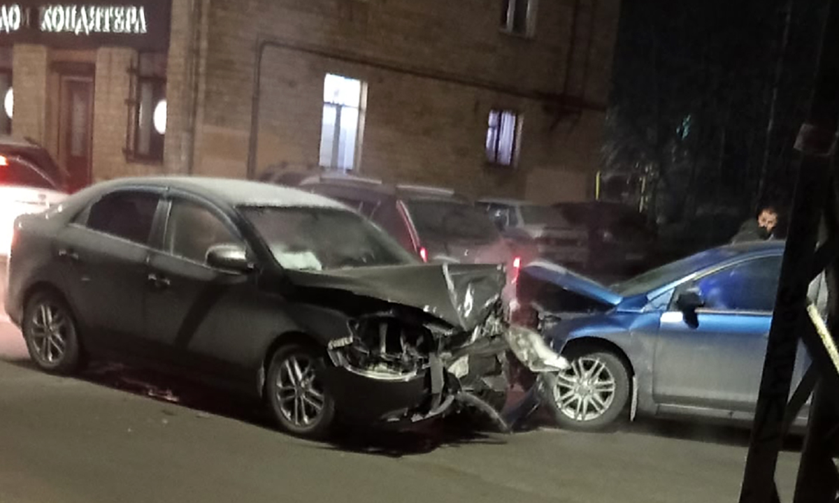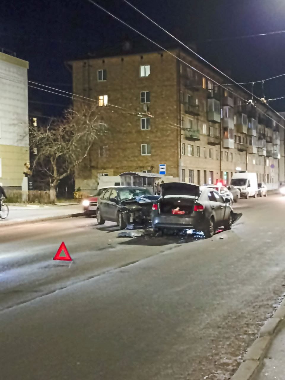 Машины столкнулись вчера вечером на улице Антикайнена около дома № 19. Очевидцы предполагают, что причиной стал гололед.