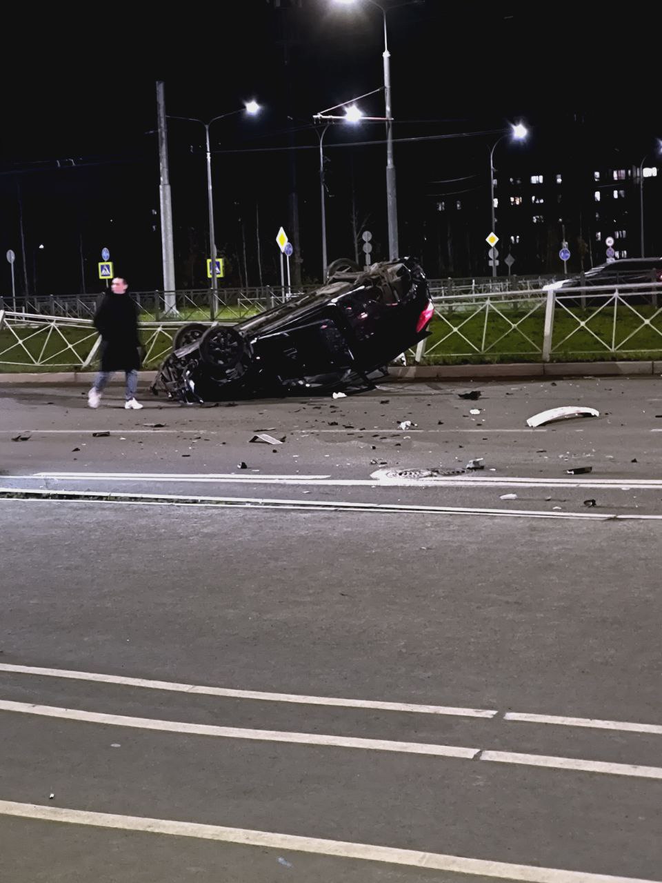 Жесткая авария в Петрозаводске: автомобиль перевернулся на крышу