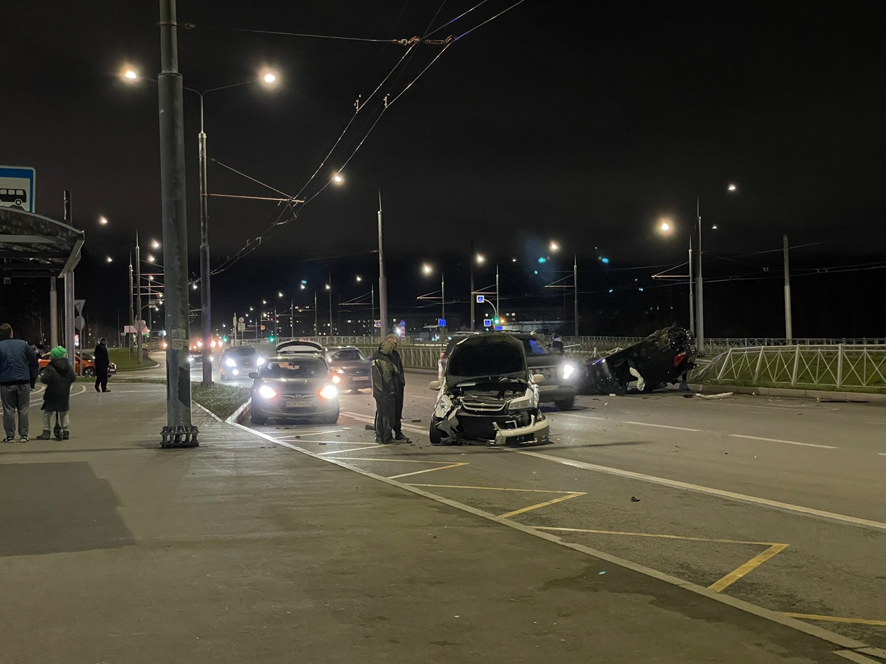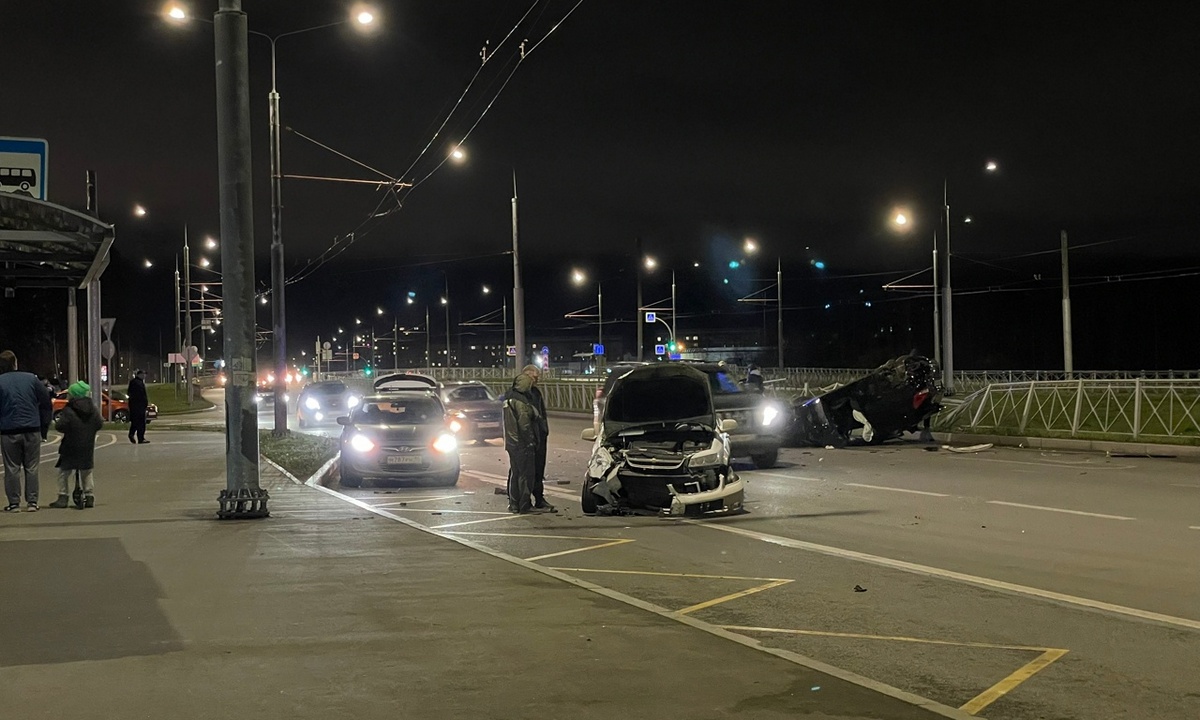 ДТП произошло около 21:30 на Лососинском шоссе недалеко от АЗС и остановки общественного транспорта. Один автомобиль опрокинулся на крышу и врезался в ограждение.