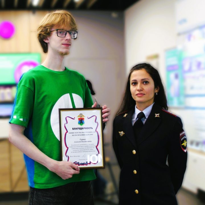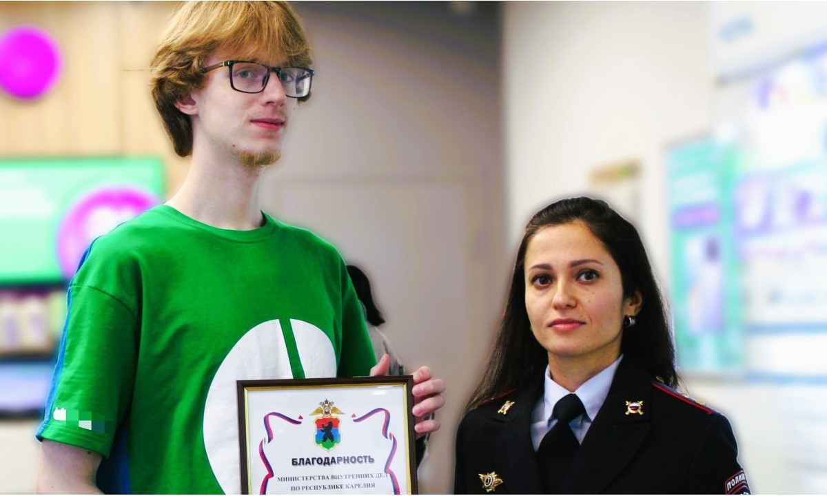 Благодаря Алексею пенсионерка смогла сохранить 100 тысяч рублей. Полицейские вручили молодому человеку благодарность за активную гражданскую позицию.