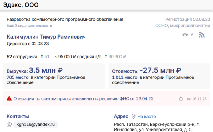 Компания зарегистрирована в 2023 году в Казани. Два 29-летних мужчины зарегистрировали Urban University в Иннополисе и начали предлагать «бесплатное» онлайн-обучение IT-специальностям. В рекламе обещали стажировку в «Яндексе», «Рамблере», «Касперском», статус резидента «Сколково», помощь с оплатой курса, пишет портал “Клиентправ”. На деле студенты должны были выплачивать рассрочку, Urban University оплачивал только первые месяцы, а потом переставал платить, стажировок не было. Курсы стоили от 140 до 250 тысяч рублей, студенты остались без знаний и с долгами перед банками.