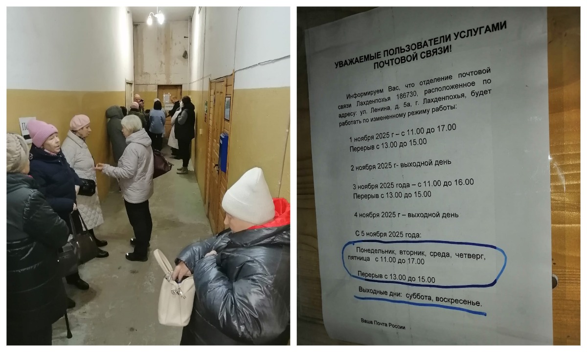 В Лахденпохье местные жители жалуются на проблемы в работе почты. Третий день горожанин не может забрать посылку: приходит в 10:30, а там уже стоит огромная очередь ожидающих выплату пенсии.