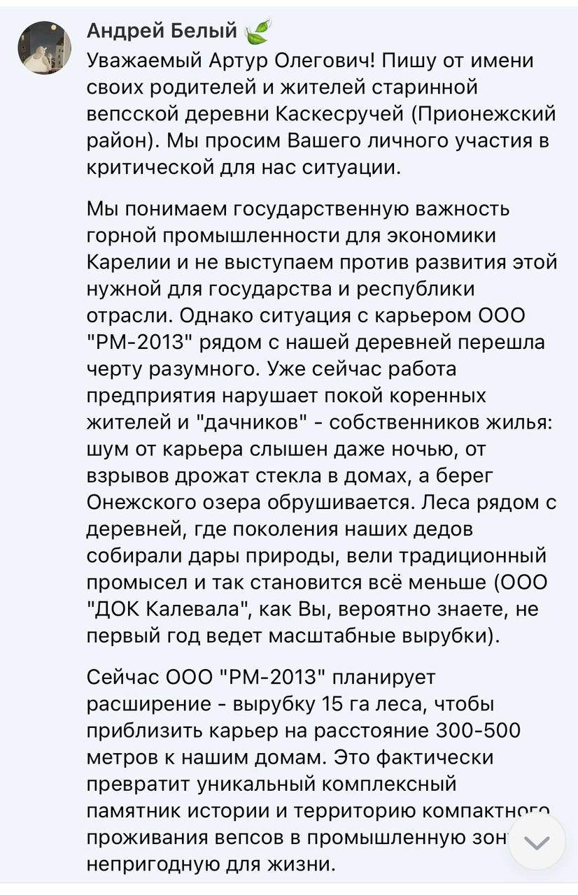 В деревне Каскесручей Прионежского района в 300-500 метрах от домов местных жителей начал работу карьер по добыче габбро-диабаза. При этом официальные публичные слушания провели лишь 1 декабря, при чем жители деревни узнали о них накануне случайно. Пришло лишь несколько человек, пишет на своей странице в Телеграме депутат ЗС РК Эмилия Слабунова.