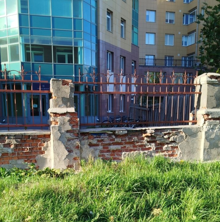 Также сейчас за старым забором скрывается ограда элитного дома, облупившаяся и полуразрушенная.
