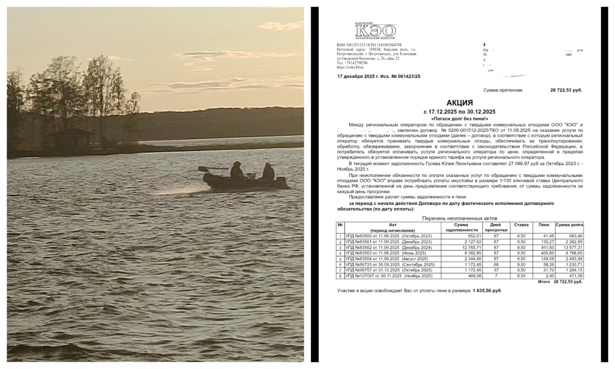Жительница Санкт-Петербурга Юлия Гусева получила очередной счет от ООО «Карельской экологической компании» (КЭО) за вывоз ТКО с ее домика на острове Кильпола в Карелии. Платить Юлии нужно круглый год по 1200 рублей в месяц, исходя из «норматива», как будто в ее 31-метровом летнем домике круглосуточно проживают 20 человек.