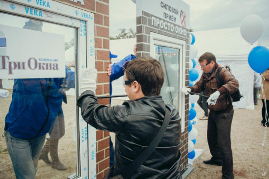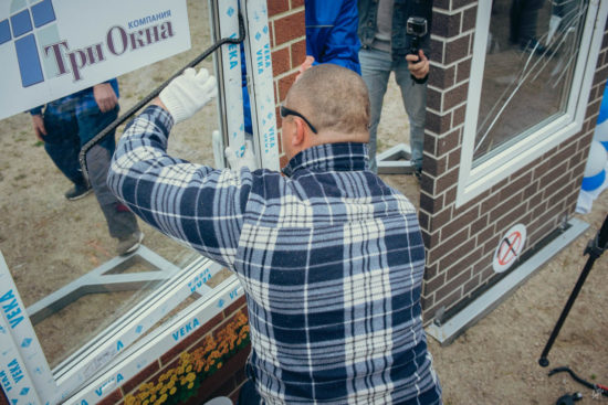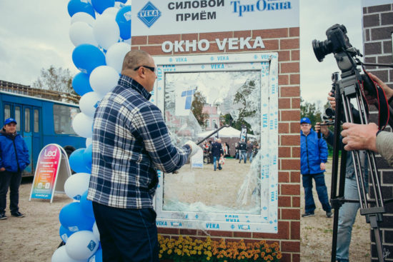 День рождения города – праздник шумный, но уютный и домашний. А что главное в доме? Правильно – комфорт и безопасность. Вот на безопасность зрители-добровольцы и протестировали простые пластиковые окна и окна VEKA. В акции «Силовой прием» приняли участие и взрослые мужчины, и даже юные «взломщицы». Конечно, всех снабдили защитными очками и перчатками и заботливо страховали сотрудники компании «Три Окна».