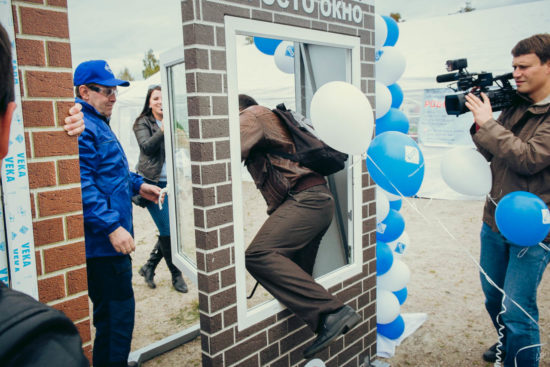 Сергей – настоящий силач, и до него VEKA штурмовали уже двое. Прошло 12 минут, а окно так и не сломалось окончательно. Тогда ведущий разрешил разбить его молотком. Только после этого профиль поддался на усилия и впустил «взломщика» внутрь. К этому моменту зрителей у акции собралась целая толпа. И такая же, уверены, уже сбежалась бы на шум, если бы квартиру атаковали настоящие воры.