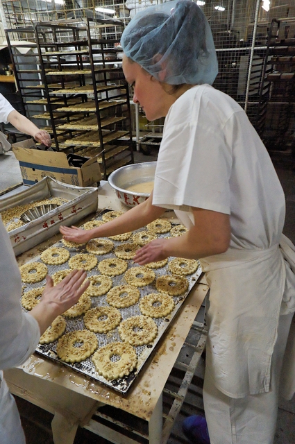 Каждая форма автоматически смазывается и наполняется тестом. Однако даже за такой техникой нужен глаз да глаз: иногда тесто распределяется неравномерно, и работникам приходится следить за массой всех форм.